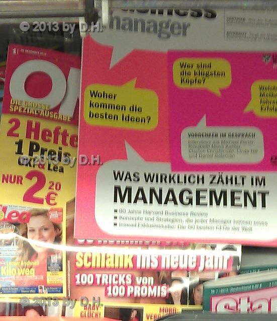 Harvard Business Manager Magazin .. befinden sich in dem Magazin von HBM eine bessere Auflistungen zum Management, Leadership, CEO, Tipps, praktischere Erläuterungen in Harvard Business Manager Magazin